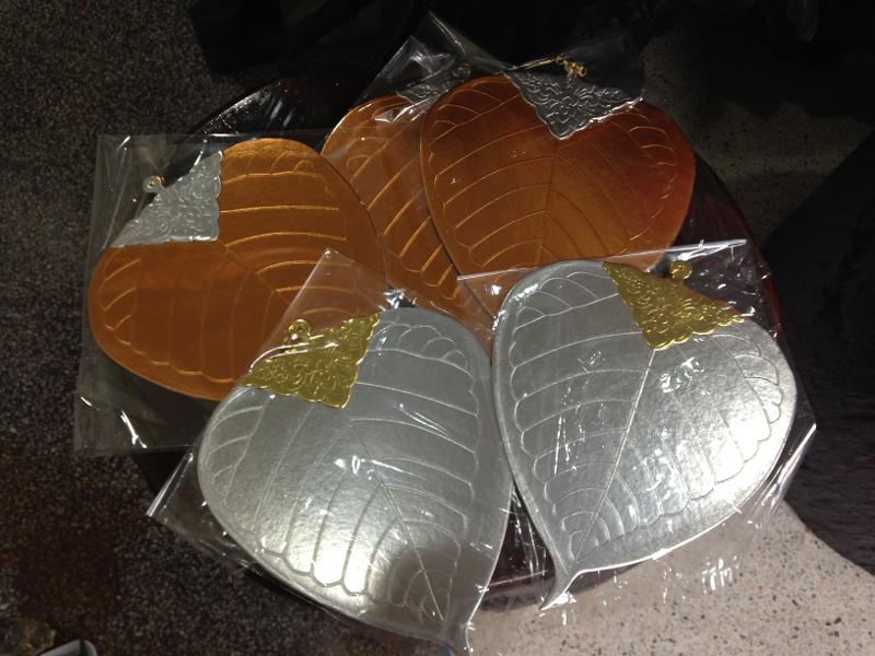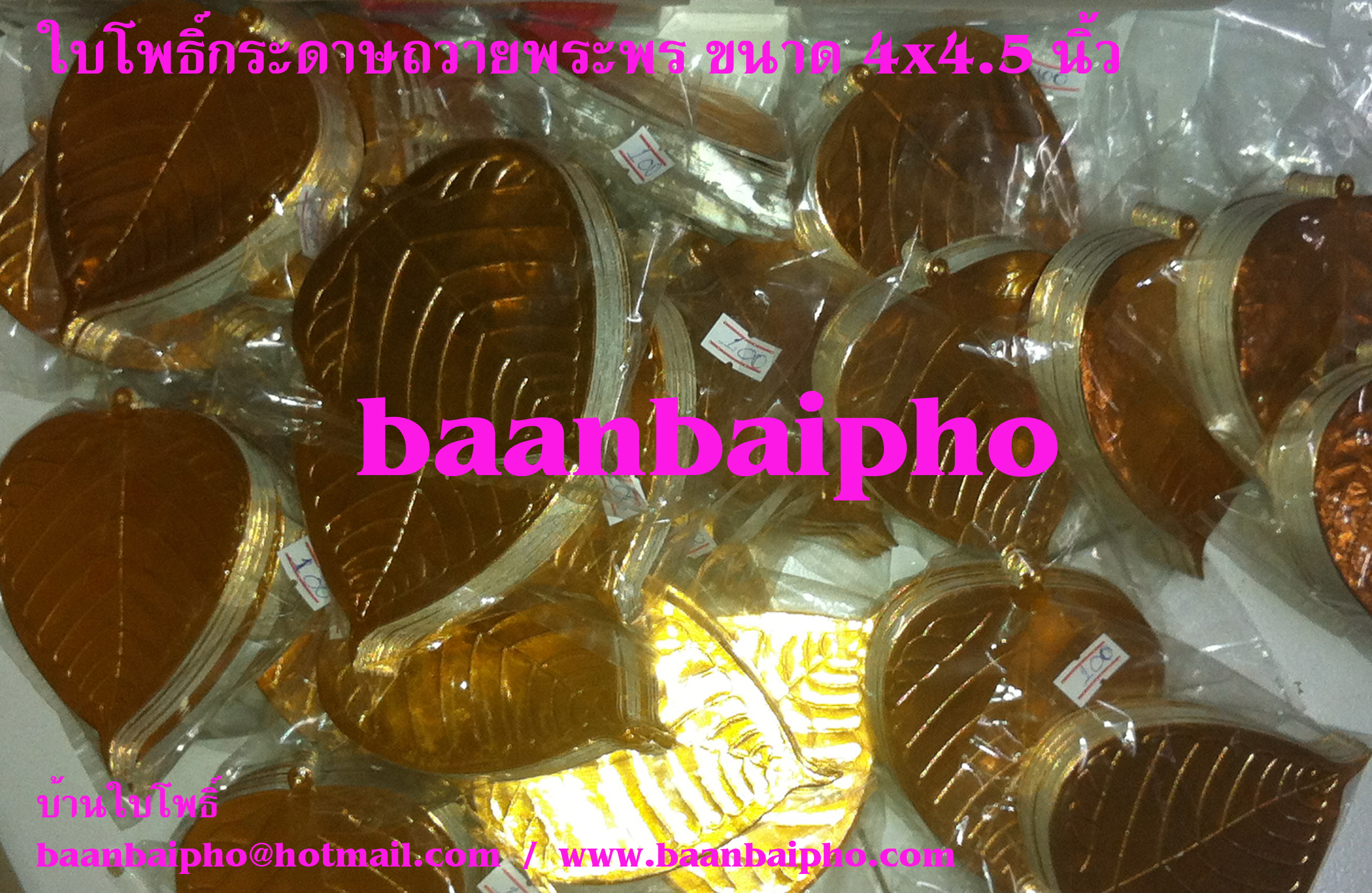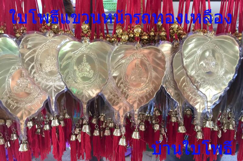 ใบโพธิ์แขวนหน้ารถ ( ด้านในเป็นทองเหลืองเคลือบด้วยพลาสติกใส)