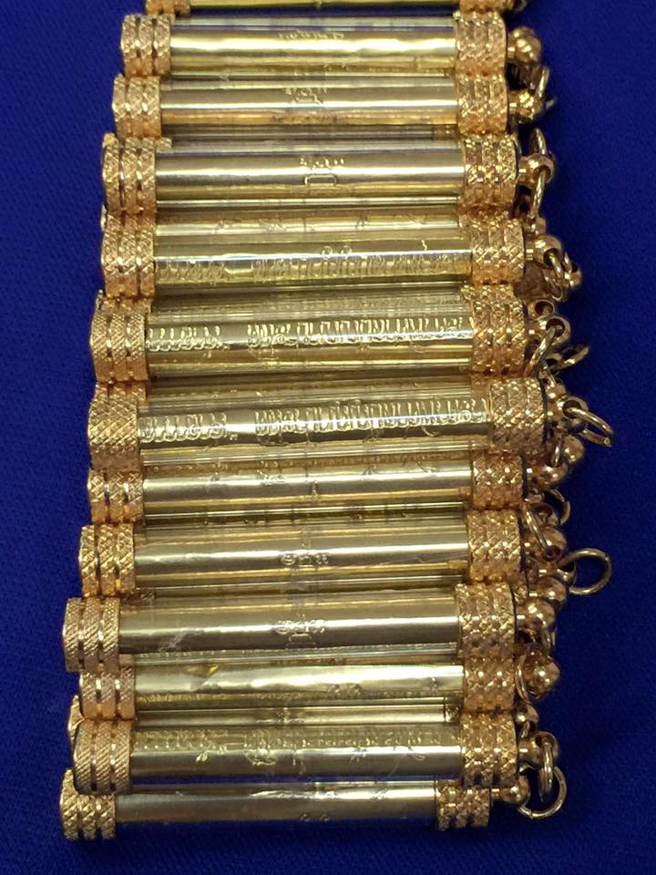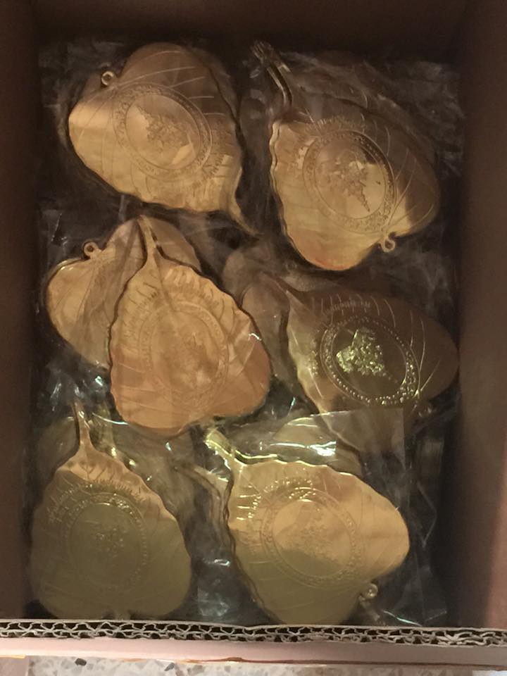 ด้านในเป็นทองเหลืองเคลือบด้วยพลาสติกใสใช้เป็นของชำร่วยในงานต่างๆ